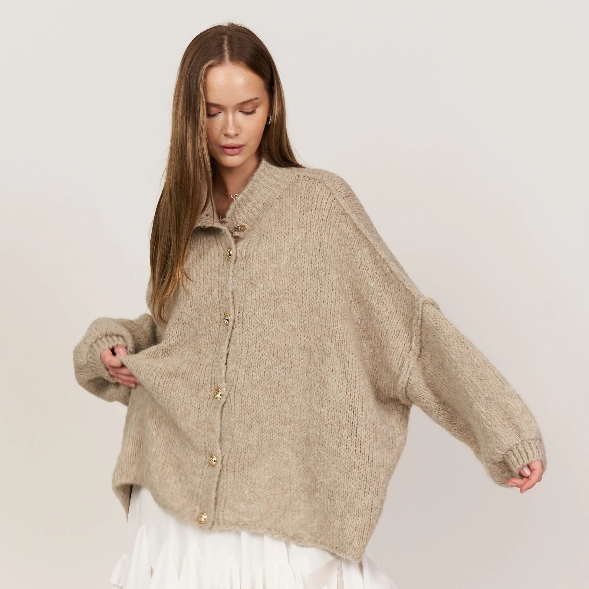 Bella | Übergroße Strick-Cardigan mit Goldknöpfen
