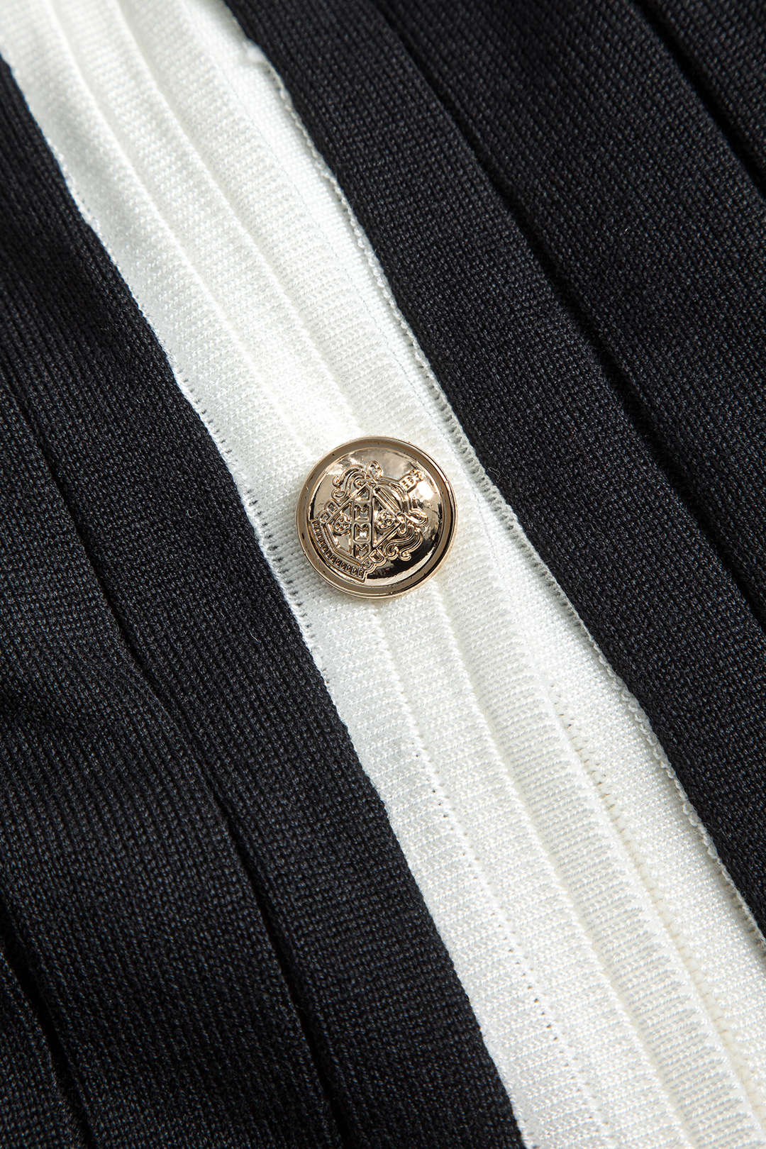 1. Taillierte Strickjacke mit Goldknöpfen – Femininer Schnitt mit luxuriösen Details.