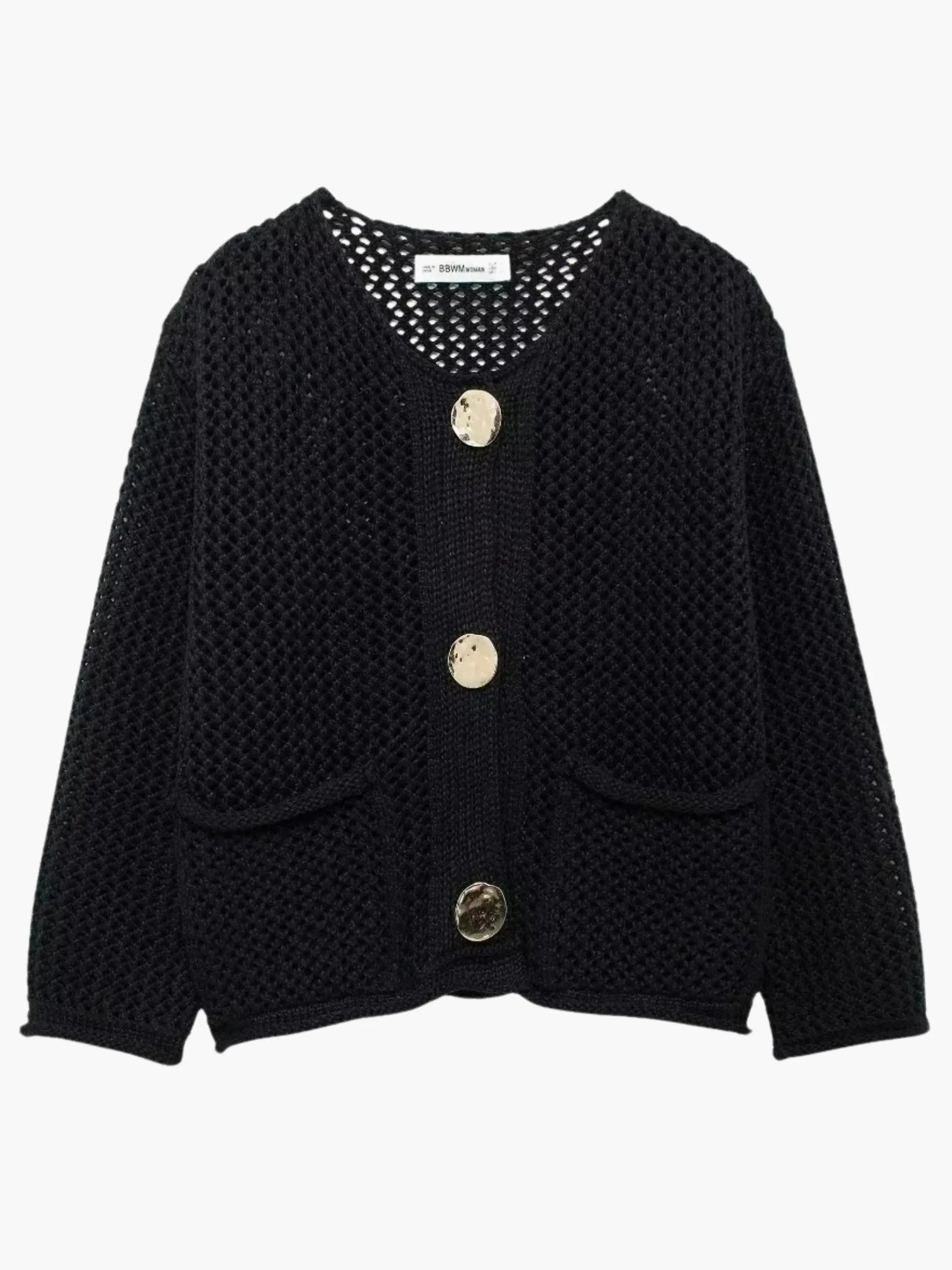 Verleihen Sie Ihrer Garderobe mit dieser Lya Grobstrick-Strickjacke einen mutigen Akzent. Die auffälligen Statement-Knöpfe, das strukturierte Design, der lockere Schnitt und die praktischen Vordertaschen kombinieren Komfort mit auffälligem Stil. Perfekt zum Layern über lässige oder semi-formelle Outfits – ein Must-have für kühlere Tage.