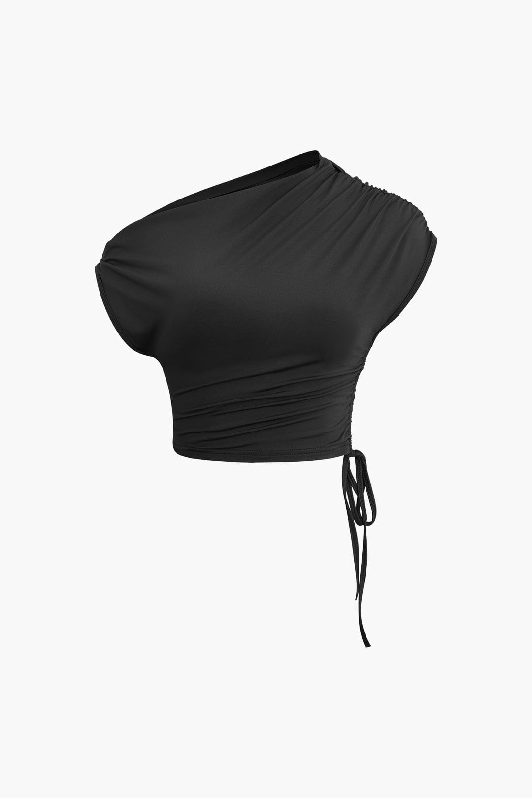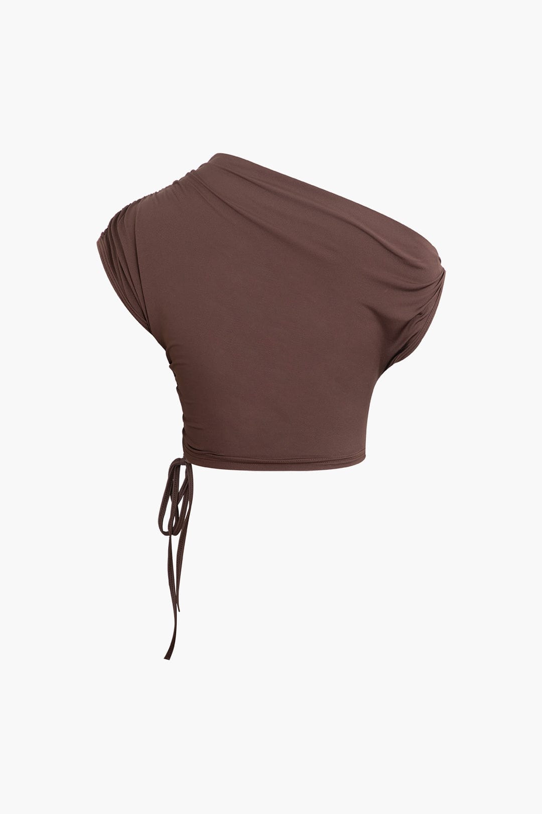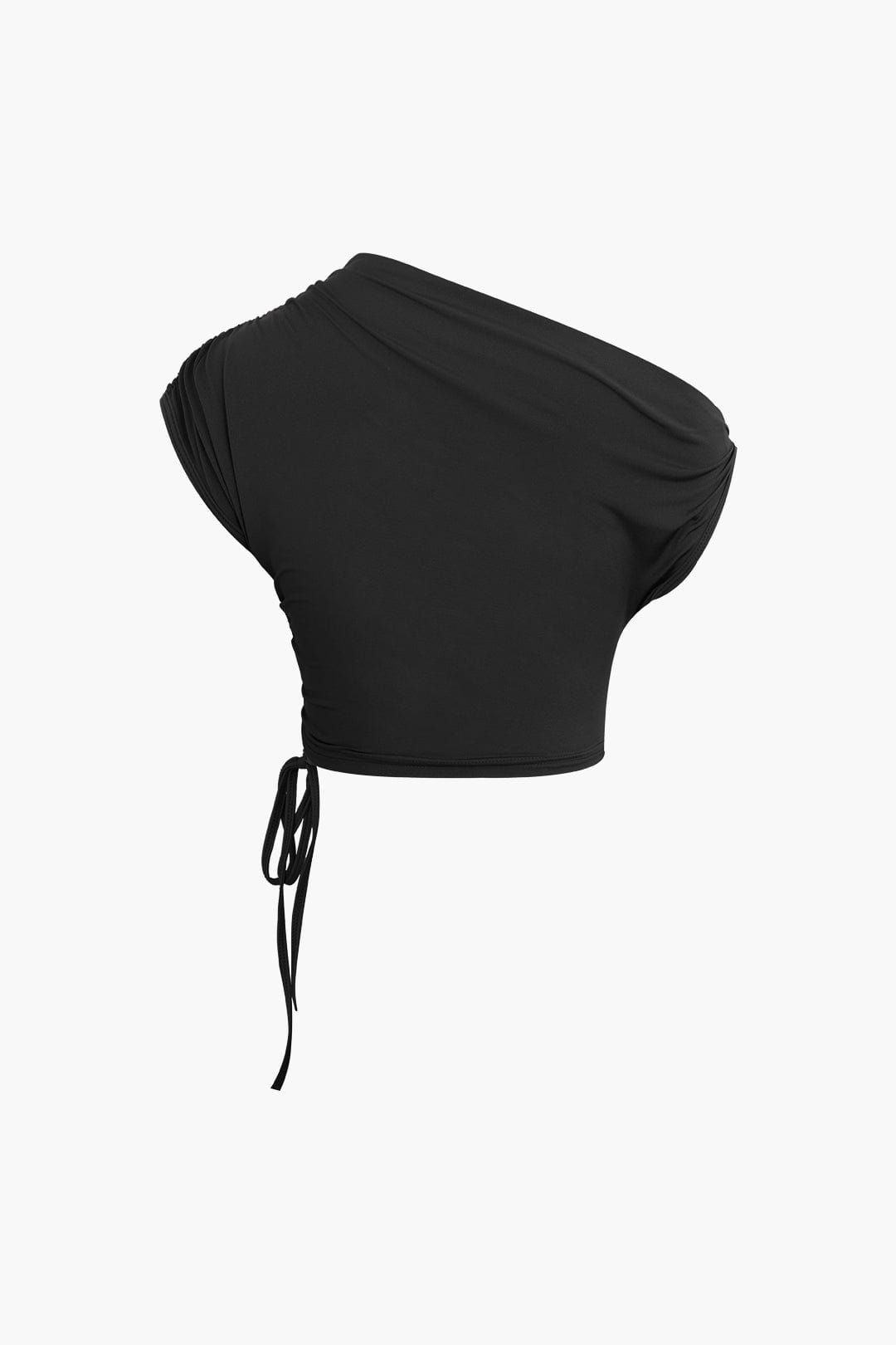 1. Asymmetrisches One-Shoulder Crop-Top – Modernes Design mit raffinierten Raffungselementen.