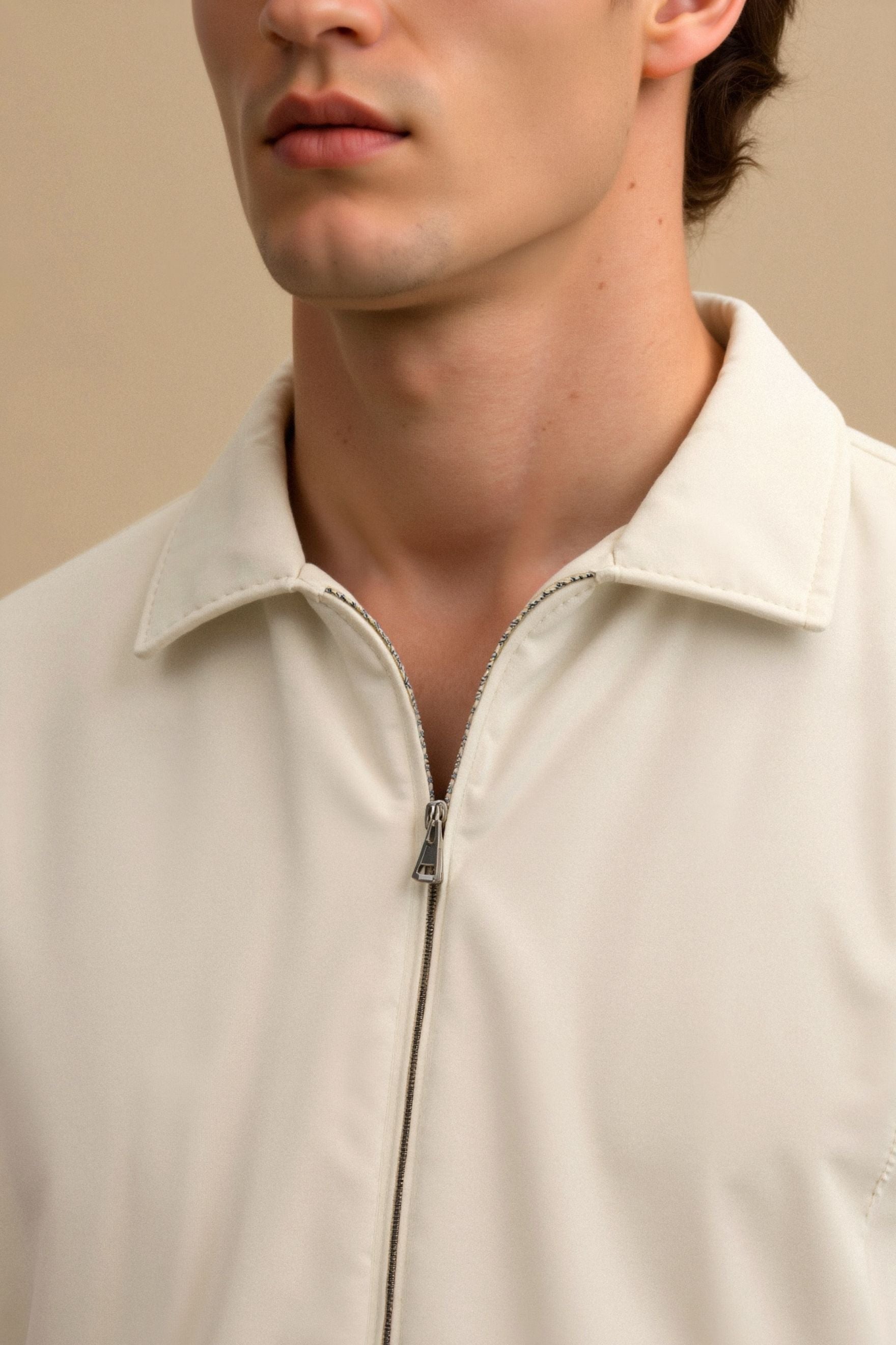 Die Minimalistische Bomberjacke vereint modernes Design mit zeitloser Eleganz. Ihr minimalistischer Stil in einem sanften Creme-Ton macht sie zum perfekten Begleiter für jede Gelegenheit – von lässigen Tagesoutfits bis hin zu smarten Abendlooks.